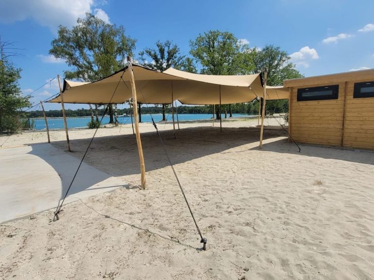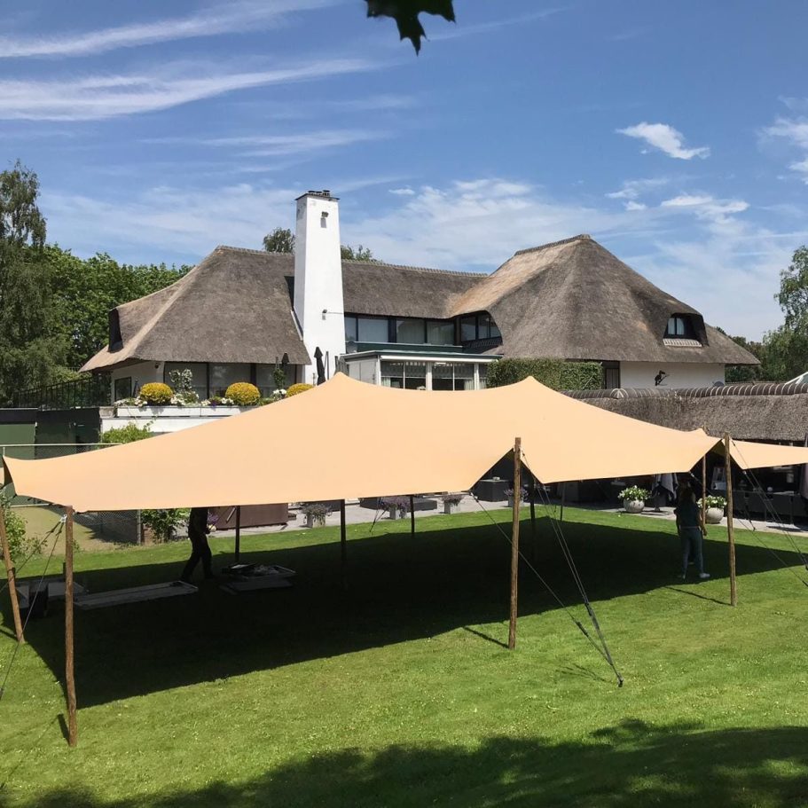 Pour l’installation d’une tente stretch de 10,5 × 15 mètres, une surface de 13,5 × 18 mètres est nécessaire.